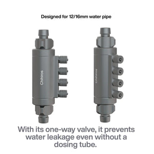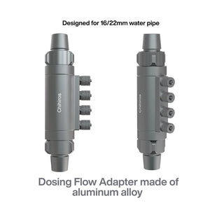 Made from durable aluminum alloy, this adapter connects directly to your canister filter’s water line and supports up to four dosing ports, each with its own check valve for leak-free operation. A built-in one-way valve prevents backflow when dosing tubes are not installed. Fully compatible with the Chihiros Dosing Pump system and available in 12/16 mm and 16/22 mm sizes to fit most filter pipes.
