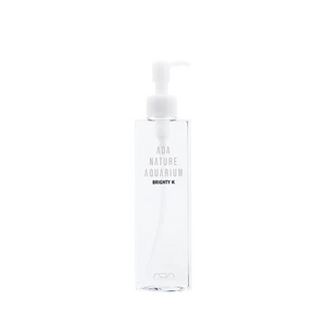ADA BRIGHTY K is a liquid fertilizer for supplying potassium to planted aquariums. When potassium is insufficient, the photosynthesis activity and growth of aquatic plants are affected, and this can cause yellowing and bleaching of leaves as well as lower resistance to algae.  Daily application of BRIGHTY K to the aquarium eliminates these problems caused by potassium deficiency and promotes growth of aquatic plants.  BRIGHTY K also has an effect of enhancing the buffering capacity of water and prevents a decline in pH of aquarium water.