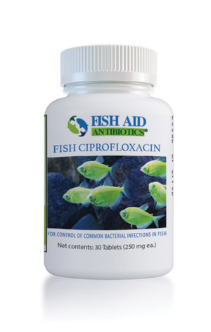 Fish Aid Ciprofloxacin is a synthetic broad-spectrum antibiotic that is effective against gram-negative and some gram-pos-itive bacterial pathogens of fish, including aeromonads, flexibacteria, and vibrios. This fish antibiotic is useful for control of some common bacterial diseases in fish, including columnaris infections such as fin rot, saddleback disease, and black patch necrosis. It can also help control fresh and saltwater furunculosis. Ciprofloxacin inhibits unique target enzymes needed for bacterial replication and DNA repair; therefore, it may be effective against bacteria that are unresponsive to other antibiotics.