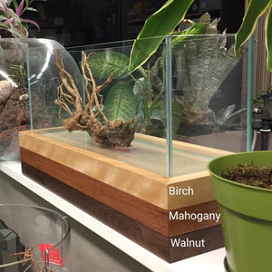Hardwood framing and base for your rimless aquarium, available in Birch, Mahogany, and Walnut. Handcrafted in California, this is a true Aqua Lab original available nowhere else.