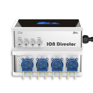 This set consists of an ION Director and a GHL Slave Doser 2.1, with 4 pumps, stepper motors, and power supply. With MUI sensor, reference fluids A+B 500 ml each, silicone tube 5 m and PAB-cable 50 cm.