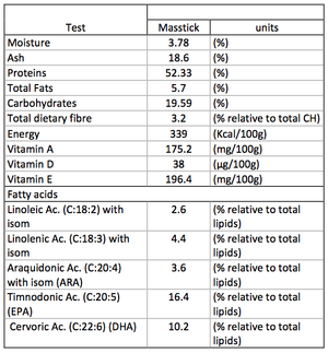 Because Masstick is comprised mainly of freeze-dried crustaceans, it does not contain fish skeletons and is thus very low in phosphates compared to its protein content.