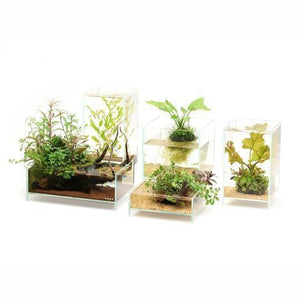 The Glass Air line from DOOA features decorative vase-like aquariums for small and simple aquatic or semi-aquatic ecosystems. The novel design with an open space beneath the bottom plate produces a unique floating feel and allows for more creative planted aquarium keeping.