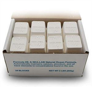Formula 28 senses the concentration of 28 individual elements, including calcium, strontium, and all trace elements, then automatically adjusts each one to the same concentration found in the sea. The blocks or nuggets dissolve only to replace depleted elements in solution.