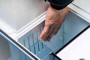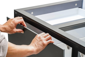 The UNS Reef System offers a reef-ready setup in four different sizes. The R line of rimless aquariums features signature UNS 45° mitered edges, black silicone and thicker, ultra-clear glass ensuring long term performance. The system includes a matching aluminum-framed stand with a built-in sump filtration system. The stand’s doors are magnetic and fully removable for easy device control and personalized customization. Larger models include storage drawers for organization of aquarium essentials and more. Each detail of this system was carefully considered and designed to provide the right balance of functionality and aesthetic. Learn more about the details below.